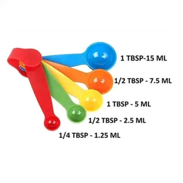 Home Baking Tools Plastic Measuring Spoons Set – 5 Colourful Pieces